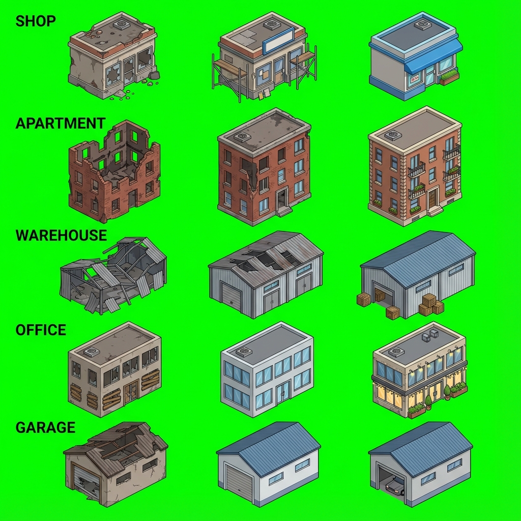 - Created 4 TSX tilesets with terrain/wang set definitions - grass_soil_autotile.tsx (terrain-based) - fence_autotile.tsx (wang set) - water_tileset_autotile.tsx - grass_tileset_autotile.tsx Documentation: - AUTO_TILING_VODIC.md (Slovenian guide) - TERRAIN_NOTATION_REFERENCE.md - AUTO_TILING_CHECKLIST.md - AUTO_TILING_SESSION_SUMMARY.md - Updated MICRO_FARM_VODIC.md - Updated DNEVNIK.md Generated TOP-DOWN sprite sheets (7 packs): - town_buildings_topdown.png - trees_topdown_pack.png - rocks_obstacles_topdown.png - mine_entrances_topdown.png - starting_camp_topdown.png - farm_structures_topdown.png - buildings_ruins_states.png (3 states per building) Organized 60 Krvava Zetev sprites in krvava_zetev_sprites folder All assets vibrant colors, NO grays, ready for Tiled!