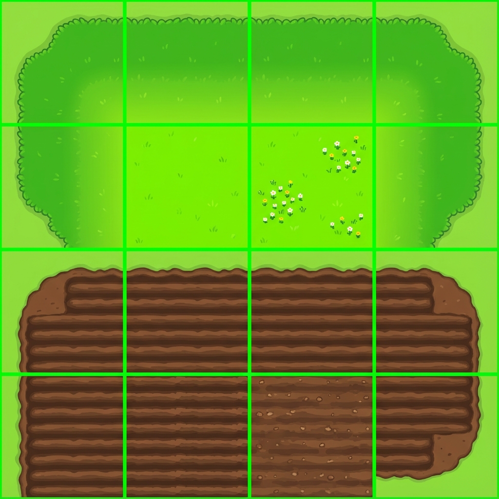 - Created 4 TSX tilesets with terrain/wang set definitions - grass_soil_autotile.tsx (terrain-based) - fence_autotile.tsx (wang set) - water_tileset_autotile.tsx - grass_tileset_autotile.tsx Documentation: - AUTO_TILING_VODIC.md (Slovenian guide) - TERRAIN_NOTATION_REFERENCE.md - AUTO_TILING_CHECKLIST.md - AUTO_TILING_SESSION_SUMMARY.md - Updated MICRO_FARM_VODIC.md - Updated DNEVNIK.md Generated TOP-DOWN sprite sheets (7 packs): - town_buildings_topdown.png - trees_topdown_pack.png - rocks_obstacles_topdown.png - mine_entrances_topdown.png - starting_camp_topdown.png - farm_structures_topdown.png - buildings_ruins_states.png (3 states per building) Organized 60 Krvava Zetev sprites in krvava_zetev_sprites folder All assets vibrant colors, NO grays, ready for Tiled!
